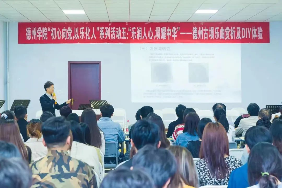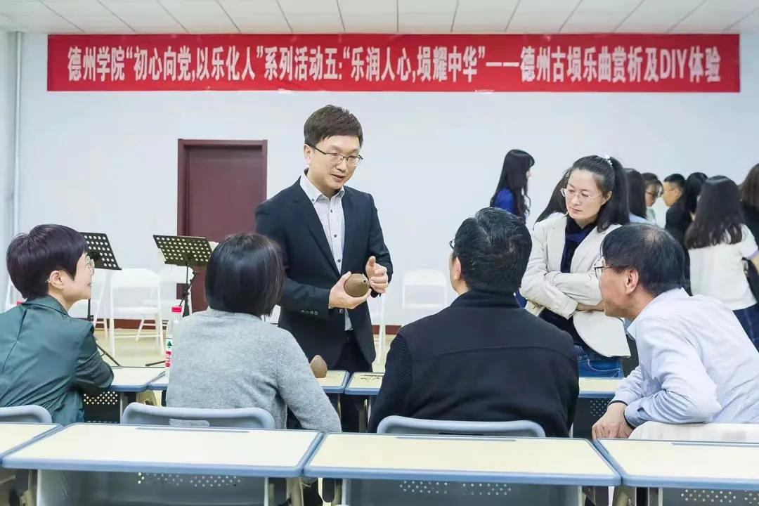 5月7日晚,“初心向党,以乐化人”系列活动(五)“乐润人心,埙耀中华”——德州古埙乐曲赏析及DIY体验活动在英国上市公司365二楼多功能厅举办。文学与新闻传播公司党总支书记韩丽明、外国语公司党总支书记张国强、公司领导班子成员及部分教师参加了此次活动。文学与新闻传播学院、外国语学院、美术学院、法学院、英国上市公司365部分古埙爱好者参与DIY体验。