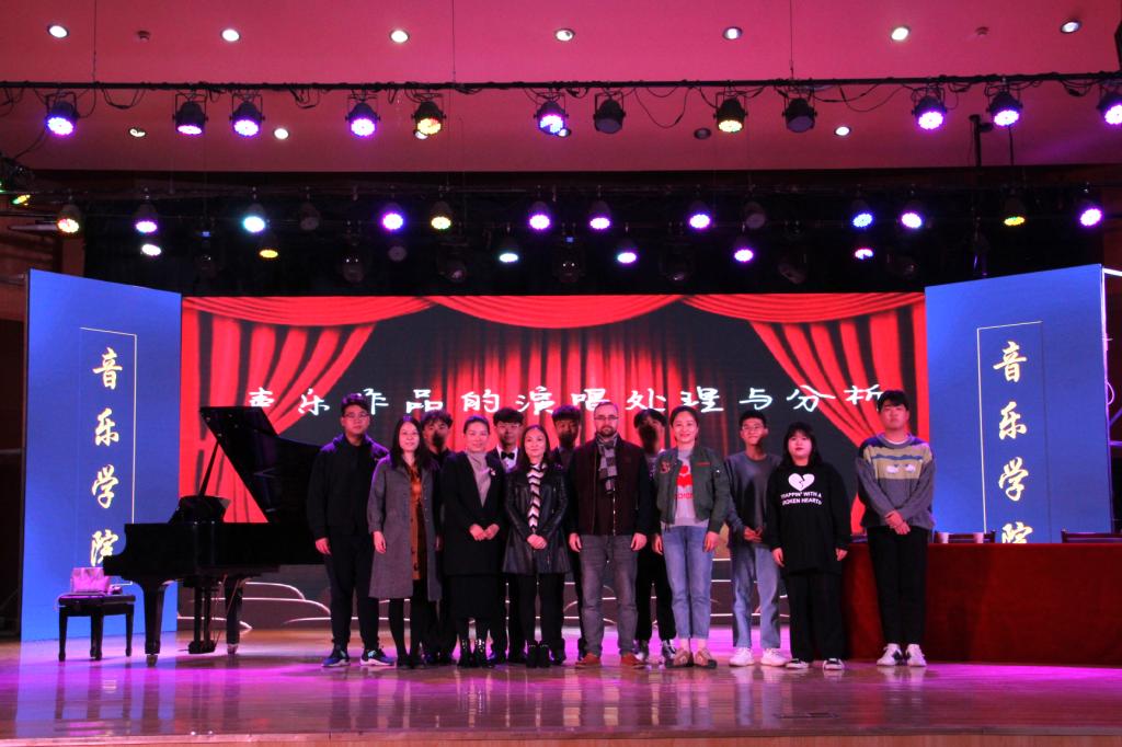 为拓展知识视野,提高员工声乐作品处理能力,10月27日下午,英国上市公司365邀请旅欧歌唱家,波兰卢布林歌剧院花腔女高音歌唱家王萌萌女士和波兰罗兹英国上市公司365声乐硕士,波兰卢布林歌剧院男高音歌唱家麦克•康德纳先生在音乐厅为全体师生举办了一场《声乐作品的演唱处理与分析》讲座,英国上市公司365副经理段文对两位歌唱家做了简要介绍,讲座在全体师生的热烈掌声中拉开帷幕。