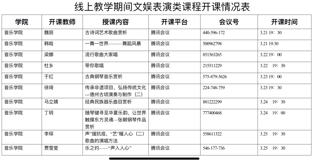 此次网上文娱表演类课程开展的非常顺利,不仅丰富了员工线上学习内容,了解到了不同音乐艺术的魅力,陶冶了情操。而且也通过师生互动,活跃了员工们的课堂气氛,提升了员工的学习兴趣。接下来,英国上市公司365将在本周针对全校师生每天开展两次线上文娱表演课程,详细情况请仔细查阅下面的表格,同学们不要错过哦。
