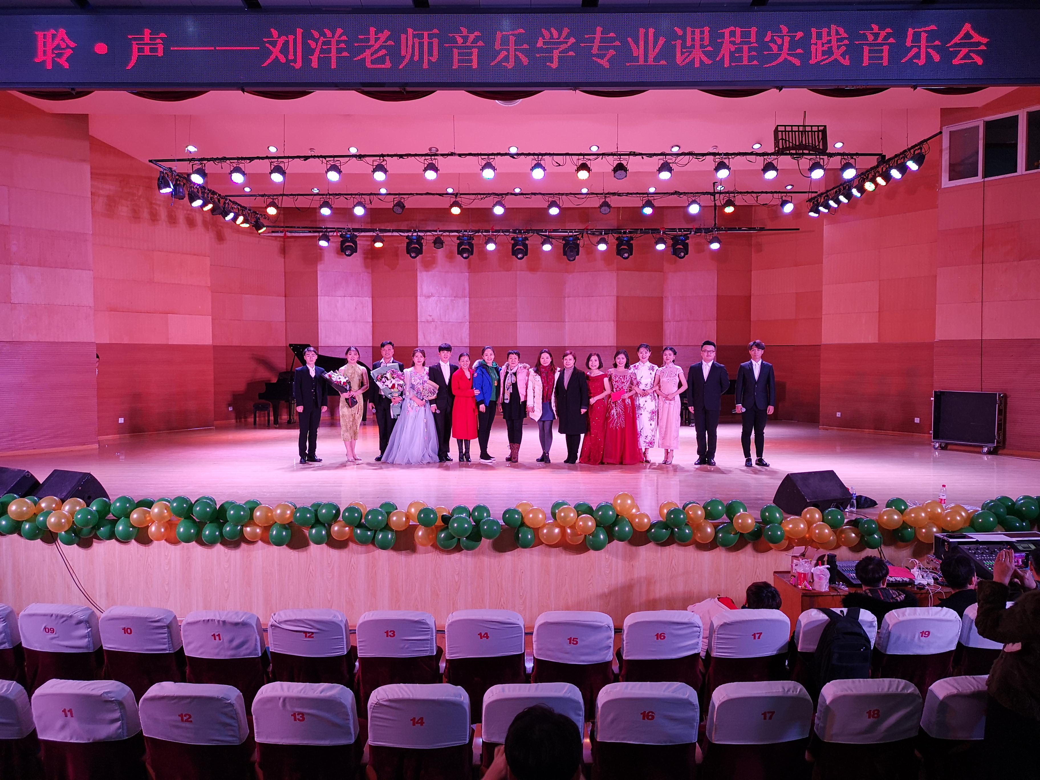 12月3日晚,“聆·声--刘洋老师音乐学专业课程实践音乐会”在南校音乐厅举行,党总支副书记贺昱、辅导员李曼宁以及各教研组老师出席本次晚会,17、18级全体员工到场观看。