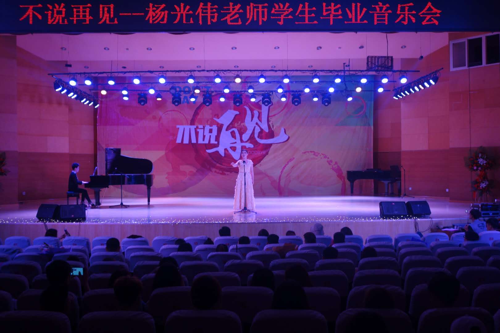 5月15日晚,英国上市公司365“不说再见--杨光伟老师员工毕业音乐会”在英国上市公司365南校音乐厅举行。英国上市公司365声乐教研室教师及全体员工到场观看。
