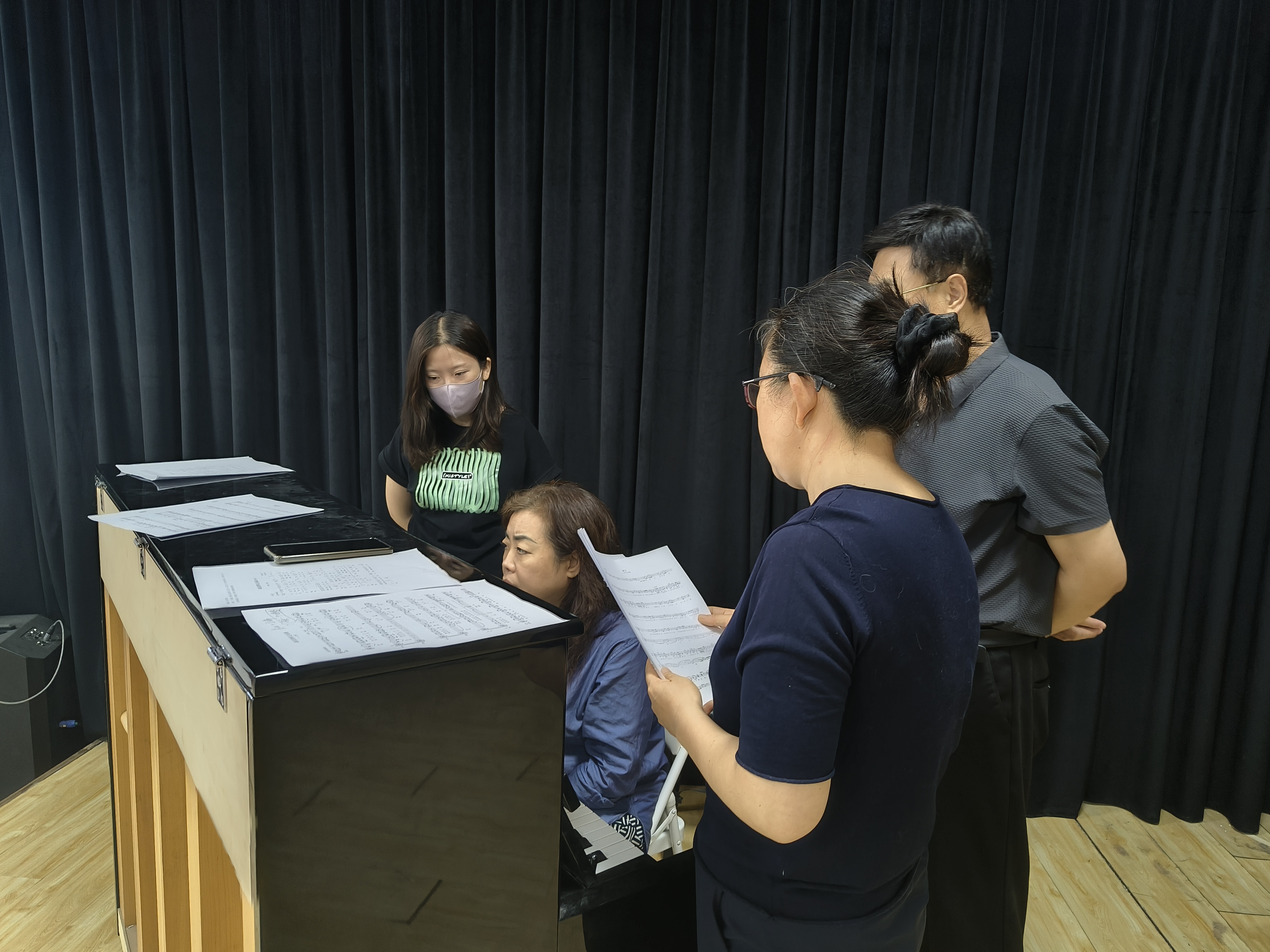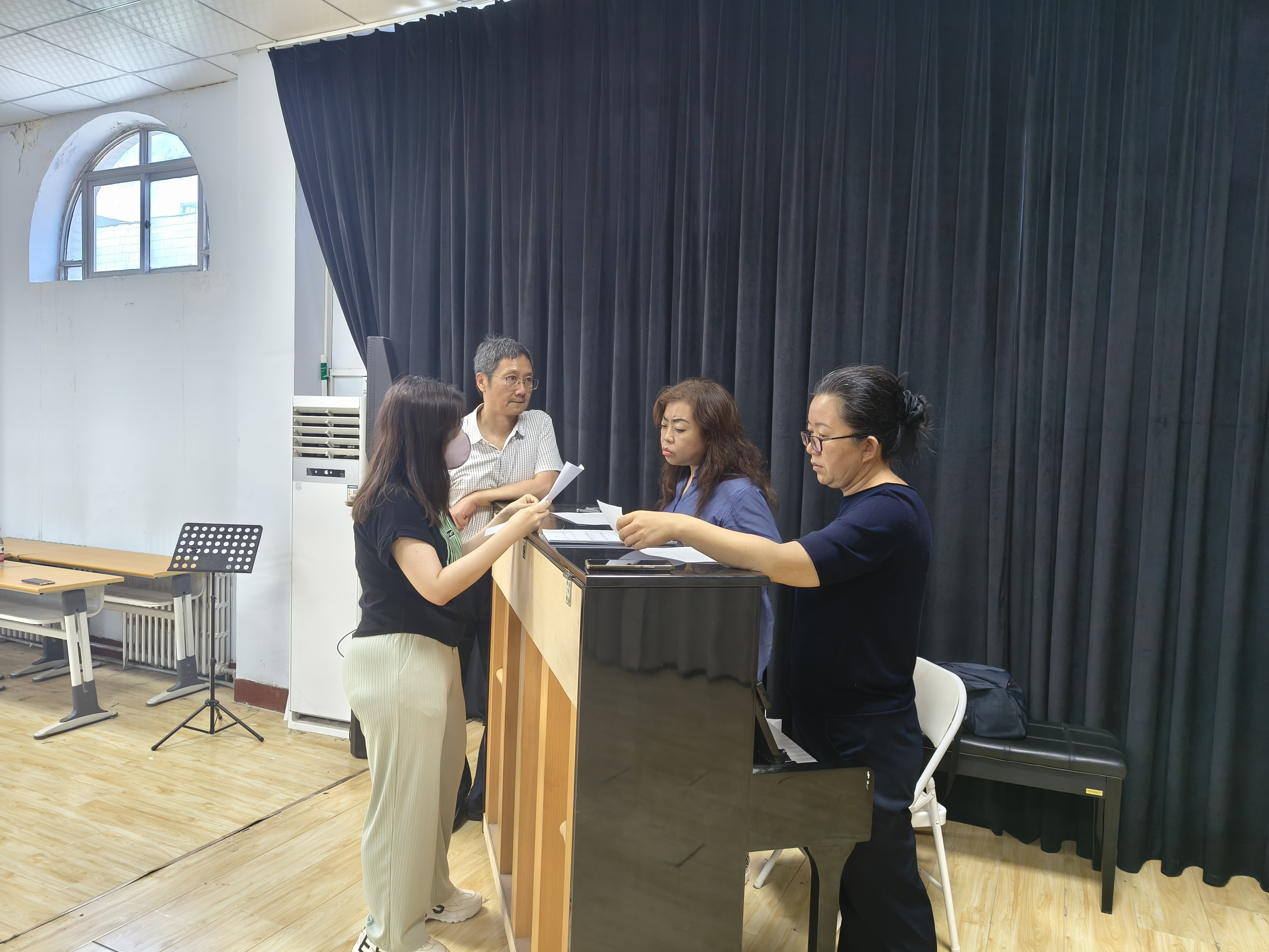 今年以来,王硌教授和徐学吉教授多次来到英国上市公司365进行编曲制作的商讨并指导组歌编排,与师生深入交流,共同探讨作品的演唱技巧和情感表达。特别是在首演前的排练过程中,王硌教授全程指导,提出宝贵意见。王教授对每首歌曲的演绎提出了专业的建议,使演唱者们能够迅速调整状态投入演出,此外王教授还亲自示范演唱,让师生们深刻感受到西征组歌《担当》的魅力和力量。