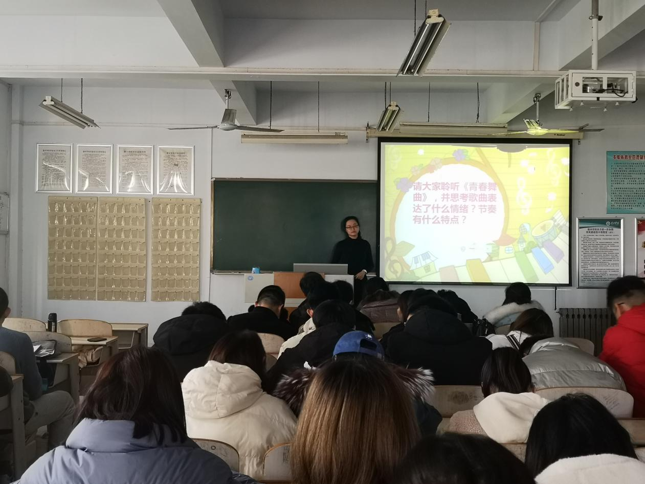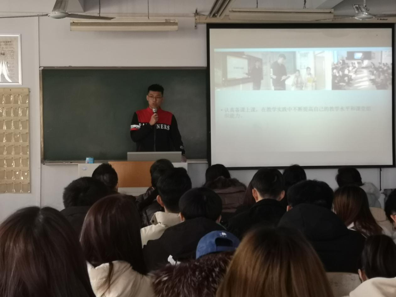 随后,在优美的音乐旋律中,众人随着视频的一帧帧变换,一起走进了为期四个月的支教生活。视频全方位呈现了同学们支教时的生活剪影,一个个精心摄制的画面,记录着支教生活中的感人细节。短片过后,两位支教生代表从实习期间的教学授课、学校工作、演出排练等方面谈了自己的心得与收获。示范课代表则结合专业技能从教学设计、教学方法等方面做出了精彩的微课展示。