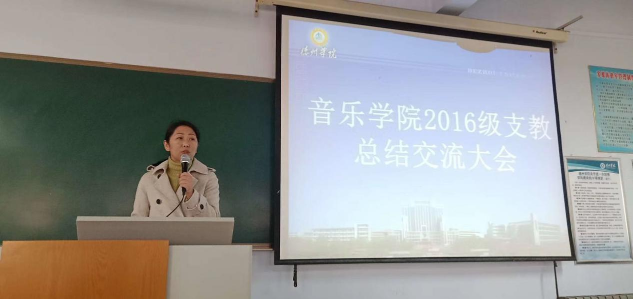 会议伊始,音乐学系系主任杜乡对此次实习支教工作进行了总结,她表示,公司2016级实习支教活动在学院领导的高度重视及各指导老师的相互配合下取得了圆满成功。在支教过程中,同学们充分发扬了吃苦耐劳的精神,不仅出色完成了日常教学任务,还利用自己的专业知识积极服务于当地的音乐基础教育,取得了丰硕成果,并获得了当地教育部门和各支教学校的一致好评。
