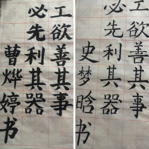 本次比赛共有四个主题,分别是毛笔字、钢笔字、粉笔字和普通话朗诵,比赛采用现场展示的形式进行。在“三字”书法比赛现场,参赛的同学聚精会神,用心书写着每一笔笔画、每一个汉字,在规定时间内,同学们交出了一幅幅各具特点、令人赏心悦目的书法作品。
