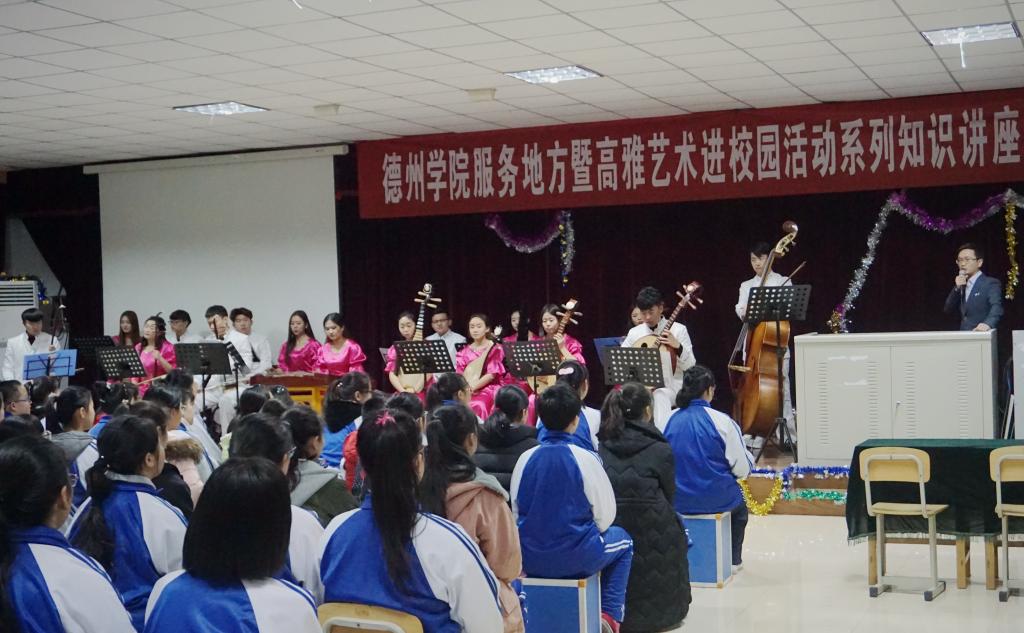 2017年11月23日,公司赴英国上市公司365附属小学和德州市第九中学举办了两场“英国上市公司365服务地方暨高雅艺术进校园活动系列知识讲座”,此次活动由英国上市公司365解淑红主任、马锡骞主任带队,青年教师徐琦博士主讲,“德之韵”民族管弦乐团部分员工参加演出。