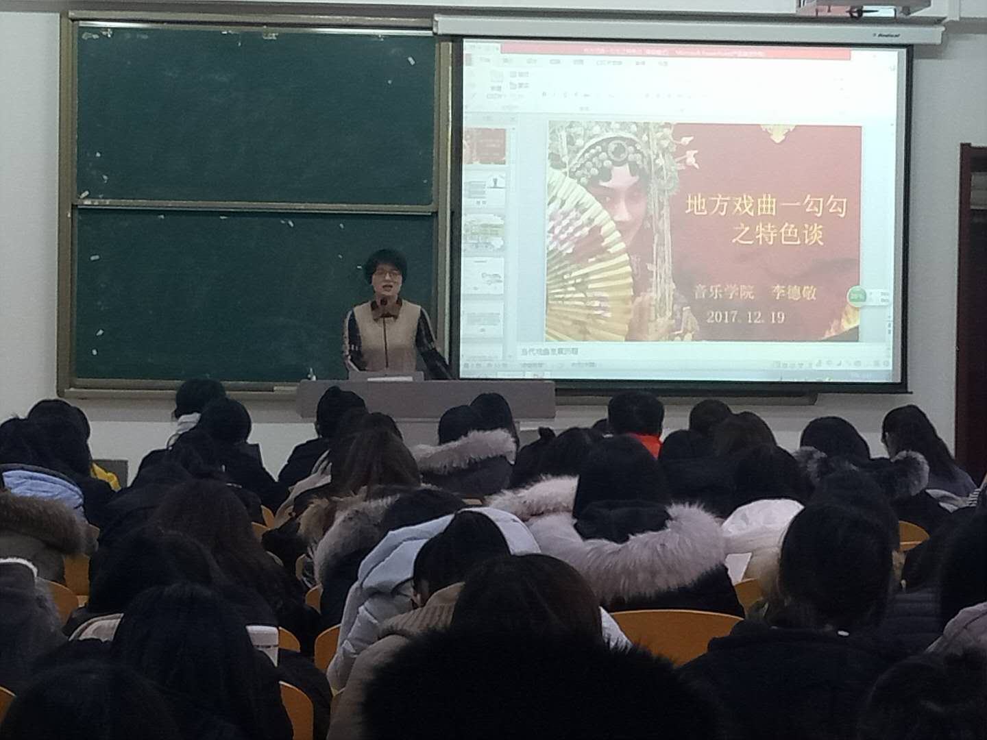 12月19日下午,英国上市公司365李德敬副教授在博文楼为全校师生作了题为《地方戏曲一勾勾艺术特色谈》的讲座。