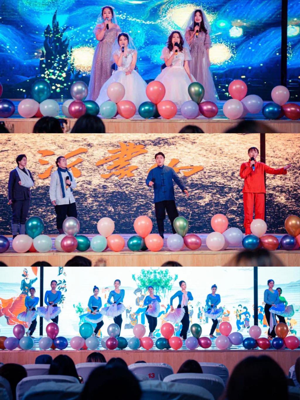 本次音乐会由一首《空白格》拉开了帷幕。《萨帝梨形曲序奏》是萨蒂完成的一部四手联弹钢琴作品,曲风简朴,幽默,极具个人风格。青春是生命中最美妙的一段时间,接下来的舞蹈《我们的时光》让观众体会浪漫悠扬的感情。《贝加尔湖畔》是俄罗斯风格的民谣曲风,用温暖的声音,将聆听者带入贝加尔湖畔的美景,仿佛置身于其中的浪漫故事。接下来的《望乡词》歌曲表现了台湾将士望着大陆故乡眼淌泪,心痛哭的悲伤心境。民乐合奏《大鱼》旋律悠远绵长,歌词画面感丰富又不乏动人细节,如诗一般直戳人心。《歌曲串烧》唱出了青春的激情活力。萨克斯合奏《mojito》充满浪漫感情的歌曲,由爵士风格的萨克斯演奏出来,给我们带来了不一样的听觉盛宴。接下来一段beat box燃爆全场。胶州秧歌是山东省胶州市地区的传统舞蹈,其舞蹈、音乐曲牌和情节剧在中国秧歌群体中独树一帜。《海棠啊让他去吧》选自经典歌剧《沂蒙山》,生动的演唱让观众感受到国家存亡与个人命运的纠缠中牺牲小我,军民一心,团结抗战的故事。《舞蹈串烧》鼓动全场的气氛,舞出自信,舞出理想。歌曲《玫瑰三愿》带着一种凄凉的感情色彩,反映了善良弱小者的愿望。四手联弹《绿野仙踪》渲染温馨美好的氛围。最后,由2018级全体音乐演唱的《后来》,表达了时光荏苒,岁月如梭。转眼间自己已从当年年少轻狂的天真模样,变成如今成熟稳重的职场游郎。想起青春,曾无畏无惧,无所谓失败。
