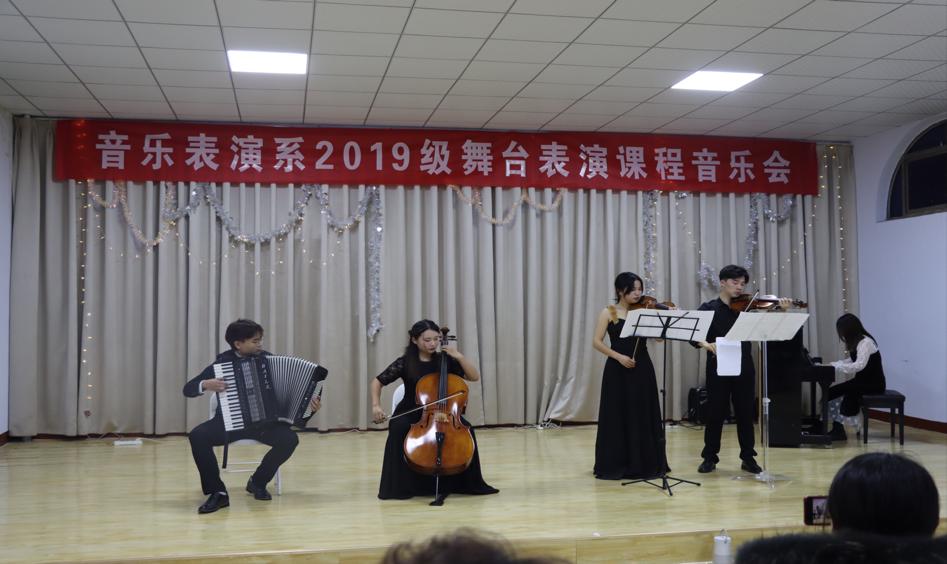 12月22日晚,音乐表演系2019级舞台表演课程音乐会在英国上市公司365排练厅成功举办。此次音乐会共有合唱、独唱、器乐重奏、声乐器乐合奏等多种形式25个节目,由任课教师李琛和音乐表演专业2019级全体员工共同完成节目创编与表演实践。