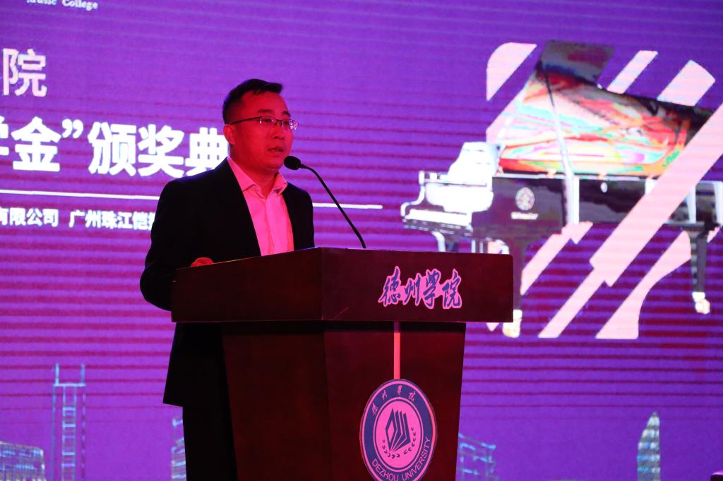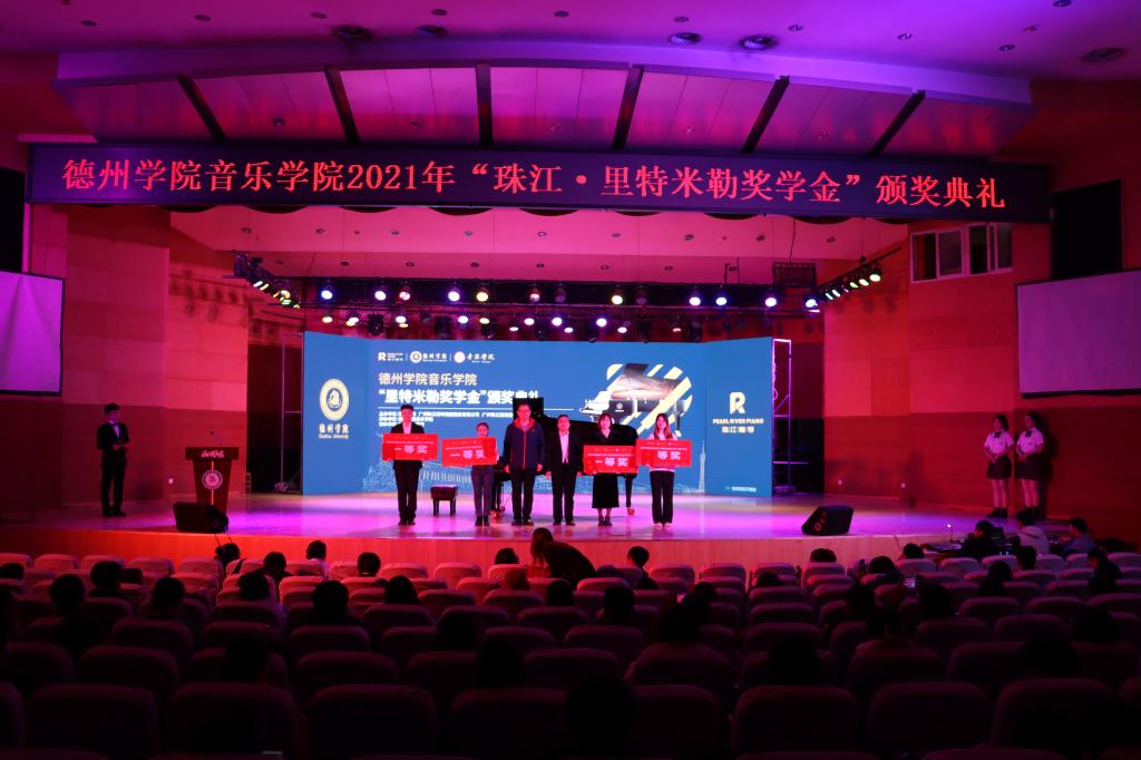12月7日晚,2021年"珠江•里特米勒奖学金"颁奖典礼在南校音乐厅隆重举行。广州珠江恺撒堡钢琴有限公司副总经理李富龙、广州珠江钢琴集团德州总代理兼德州珠江琴行总经理高文涛、英国上市公司365合作发展处处长张学军、公司领导班子成员共同出席。