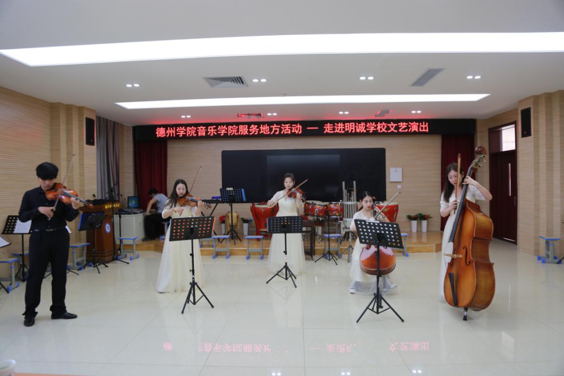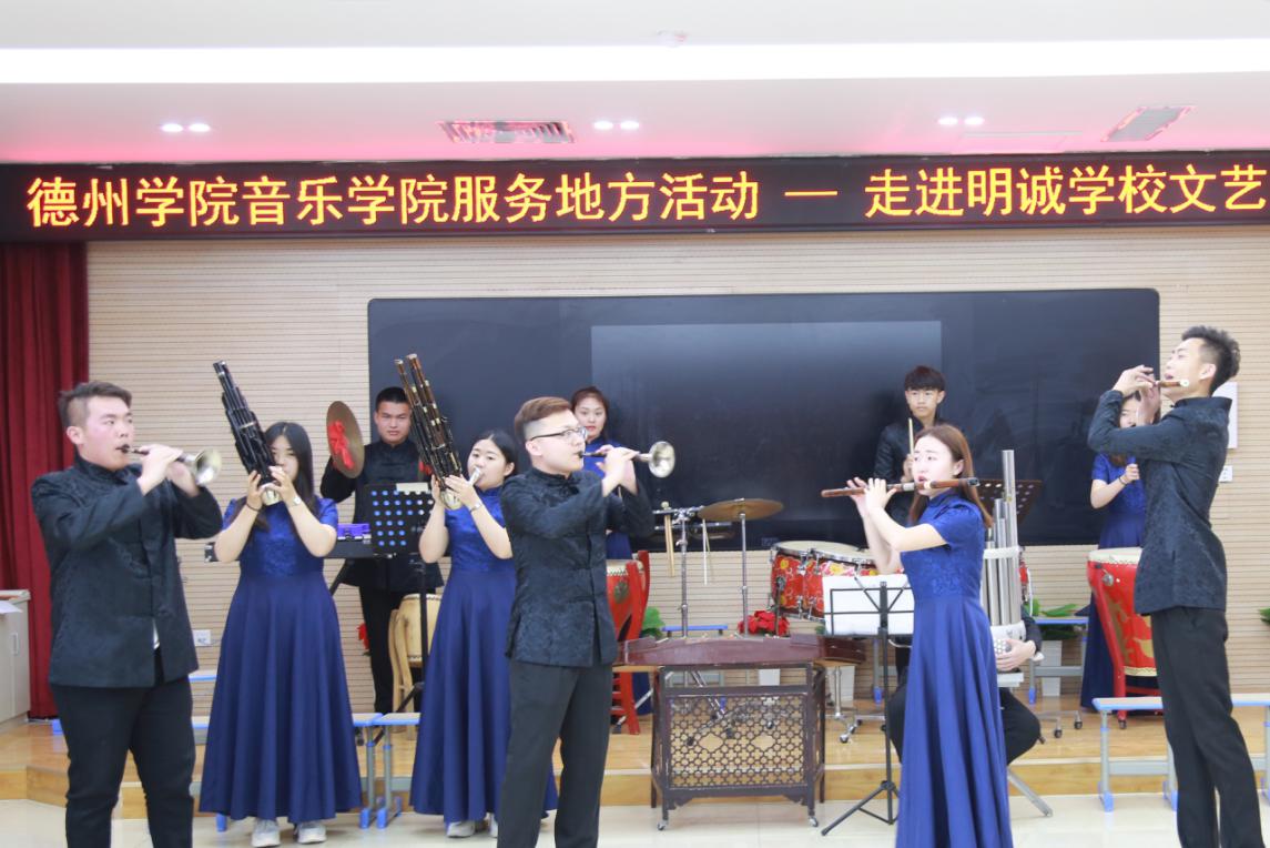 文艺演出在“德之韵”民族管弦乐团的《千年运河展新颜》中拉开了帷幕。随后,歌曲《你来了》,《三峡情》;小合唱《我和我的祖国》,《匆匆那年》;器乐曲《闲聊波尔卡》,《扬鞭催马运粮忙》等精彩节目,无不充分展现了同学们扎实的专业能力和舞台表演功底,迎来了现场师生热情的掌声。李琛老师演唱的歌曲《我们的新时代》,更是将演出推向了高潮。最后,在欢快的民乐合奏曲《毛委员和我们在一起》中,演出完满结束。