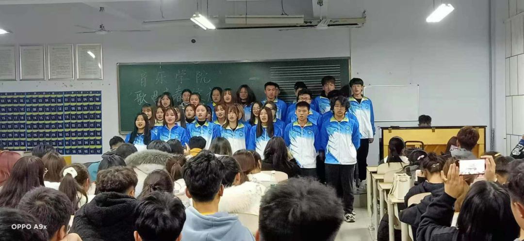 宣读了本次比赛的规则和奖项设置后,比赛开始。首先是音乐表演二班同学们带来的《大鱼》,同学们高低声部配合默契,歌声婉转悠扬。随后是音乐学一班同学们带来的《起风了》,在演唱过程中,同学们快慢分明,刚柔兼济,把握了歌曲的特点。第三个是音乐学二班同学们演唱的《大鱼》,将整个比赛带入了高潮。接下来是音乐学三班的同学们慷慨激昂的演唱《雪花的快乐》,演唱过程中,同学深情流露,很有魅力。最后是音乐表演一班同学们为大家带来的《贝加尔湖畔》,那优美的歌声,好似山谷中黄鹂的鸣叫,婉转动听,让人沉醉其中。整场比赛高潮迭起,掌声阵阵,喝彩不断。通过评委组的打分,音乐学一班取得第一名,音乐表演一班取得第二名。