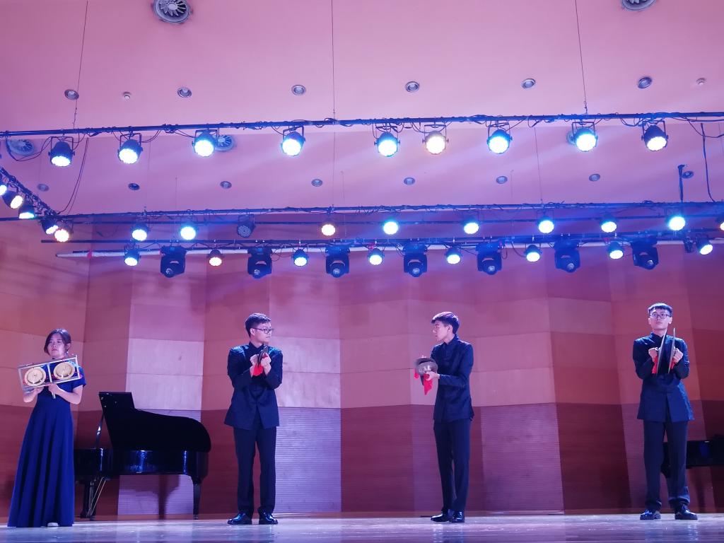 本届大赛共有47位同学历经初赛、复赛层层选拔,最终脱颖而出。院领导分别为一二三等奖获得者颁奖。颁奖仪式伴随着精彩纷呈的汇报演出。其中,阮合奏《山行》以轻快的旋律、规律的自然泛音和鲜明的佤族风格,勾画出了一幅佤族青年沿着弯曲的山路由近及远、轻松愉快行走的形象。打击乐合奏《鸭子拌嘴》创造性地运用民族打击乐器的各个技巧,通过音色、音量的对比变化以及自然节奏的模拟,生动形象地勾画出鸭子的性格和神态。钢琴四手联弹《肖邦军队波兰舞曲》显示出波兰民族的尚武精神,赢得了观众们的阵阵掌声。