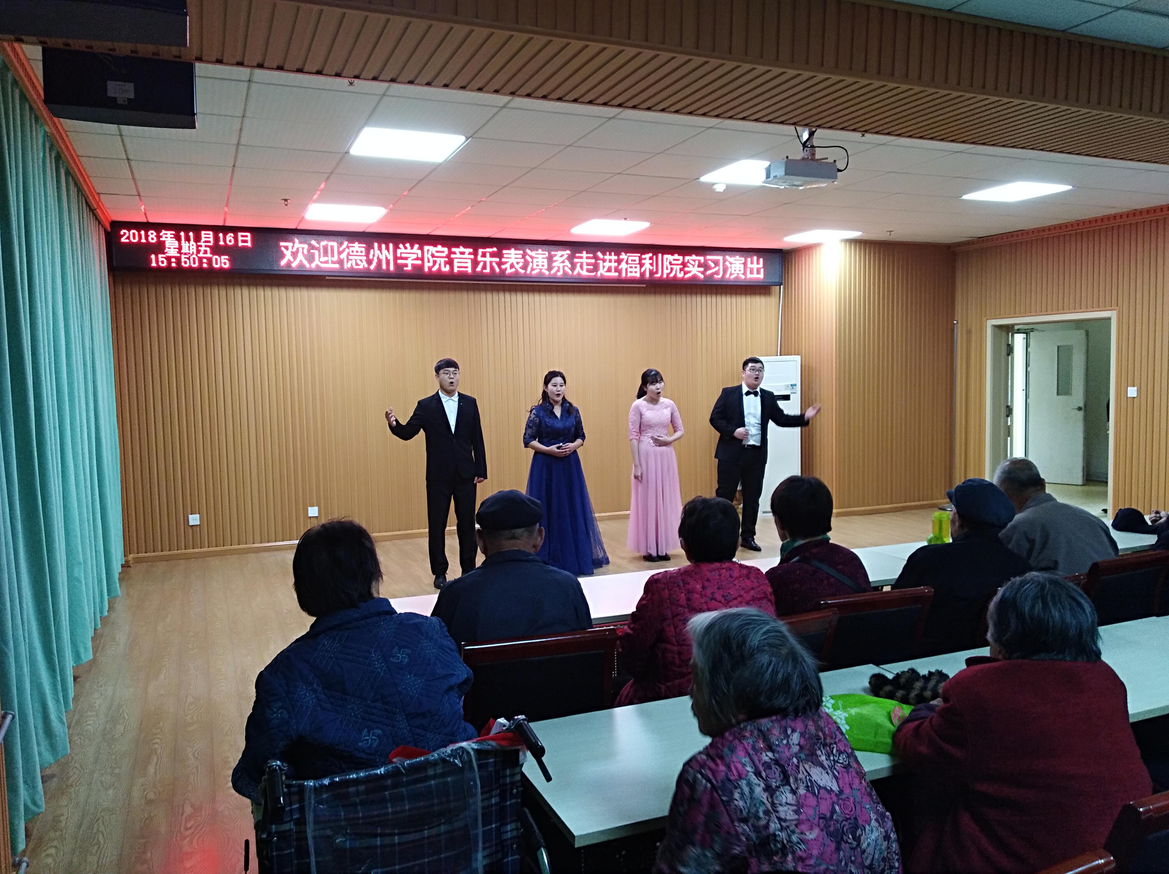 11月16日下午,英国上市公司3652015级音乐表演系员工在敬老院举办“英国上市公司365走进德州市福利院慰问演出暨音乐表演系毕业实习演出”活动,本次演出由音乐表演系器乐舞蹈教研室主任任陆以及音乐表演系声乐教研室主任薛莲带队,由2015级音乐表演系学生参加演出。