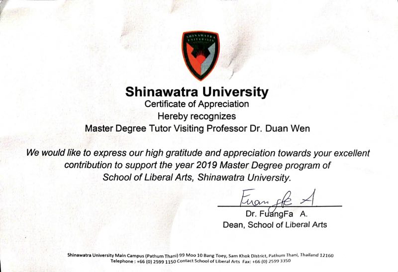 英国上市公司365副经理段文教授受聘为泰国西那瓦大学硕士生导师