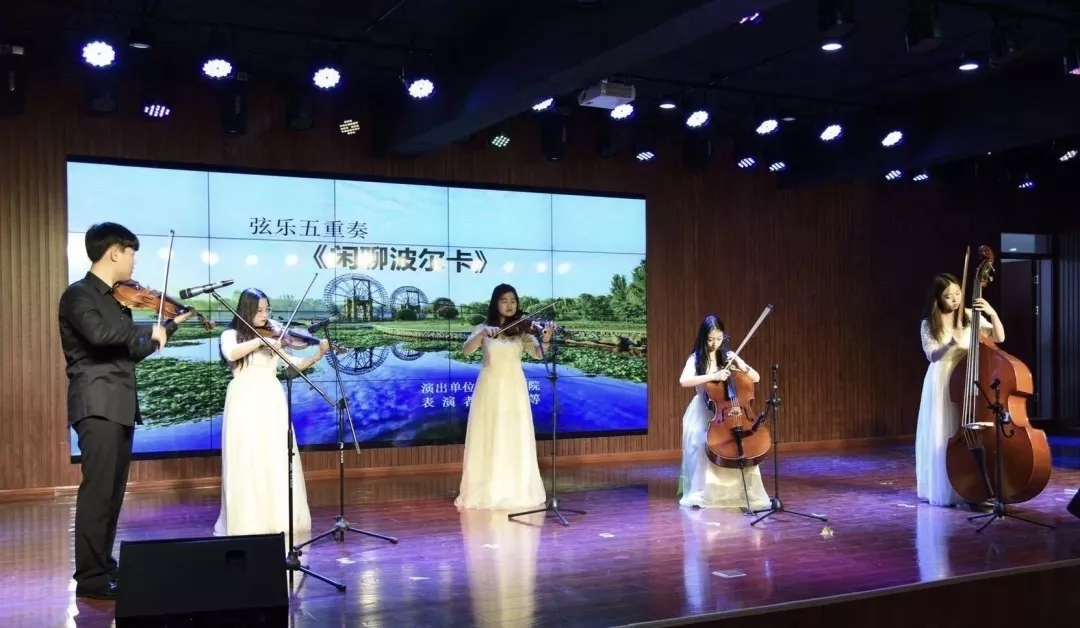 弦乐五重奏《闲聊波尔卡》、竹笛独奏《扬鞭催马运粮忙》、舞蹈《向天歌》等精彩节目,无不充分展现了同学们扎实的专业能力和舞台表演功底,迎来了现场师生热情的掌声。李琛老师演唱的歌曲《我们的新时代》,更是将演出推向了高潮。