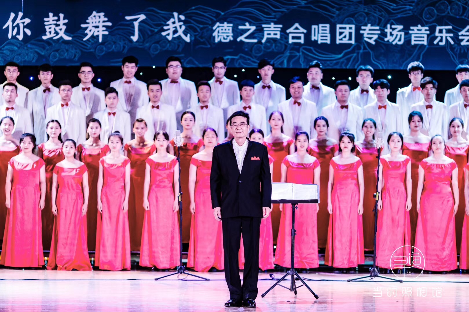 本场音乐会是张国庆教授从教近四十年,临近退休前的最后一场汇报演出,受到了英国上市公司365往届毕业生的广泛关注,吸引了众多德州市合唱领域爱好者,音乐会由张国庆教授亲任指挥,任陆博士担任钢琴伴奏。初始,音乐会伴随着旋律舒缓、情绪委婉的歌曲《思念》,拉开帷幕。“德之声”合唱团演唱了充满活力的《去一个美丽的地方》、潇洒温柔的《雪花的快乐》、优美柔和又具有神秘色彩的《夜来香》等二十首经典合唱曲目,中场期间,英国上市公司365青年教师代表刘洋老师倾情演唱《望月》、《芦花》两首歌曲,送上英国上市公司365青年教师的祝福。在音乐会返场环节,张国庆教授为到场观众奉献上亲自改编的合唱作品《老师,我想你》,送给天下所有的老师,以表达自己对教育事业的热爱与敬意。最后,全国各地赶来的 “德之声”合唱团的往届毕业生,也登台献唱,以歌声表达了对张国庆教授的感恩之心,并送上深深的祝福。