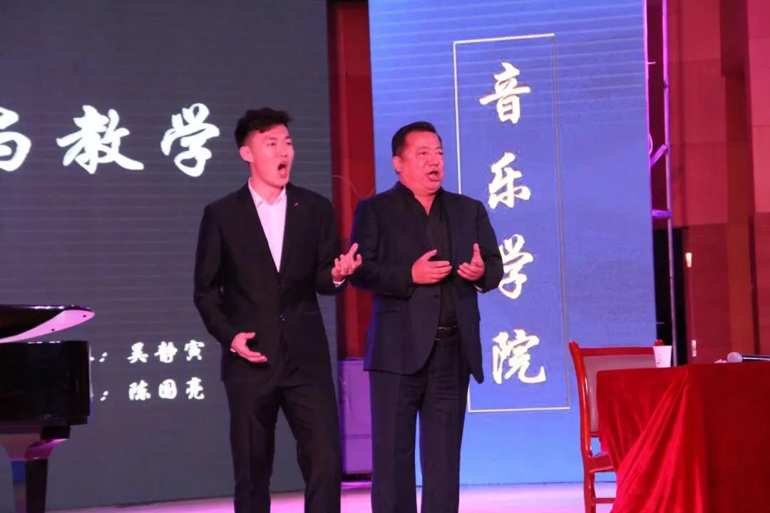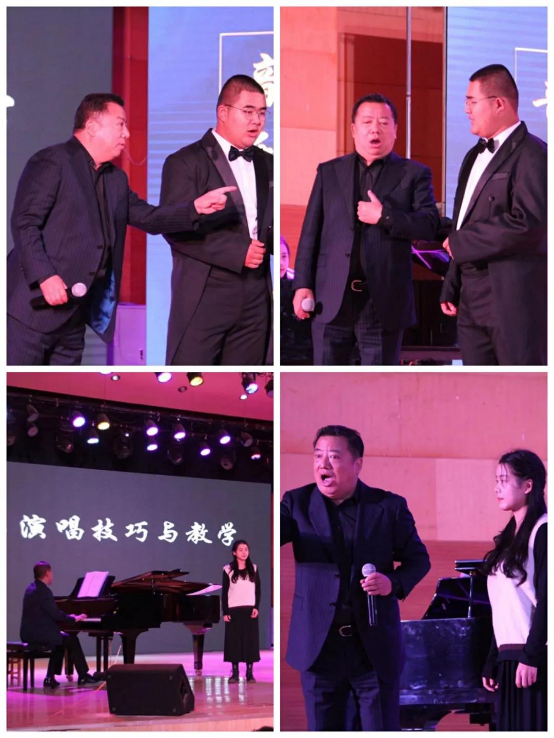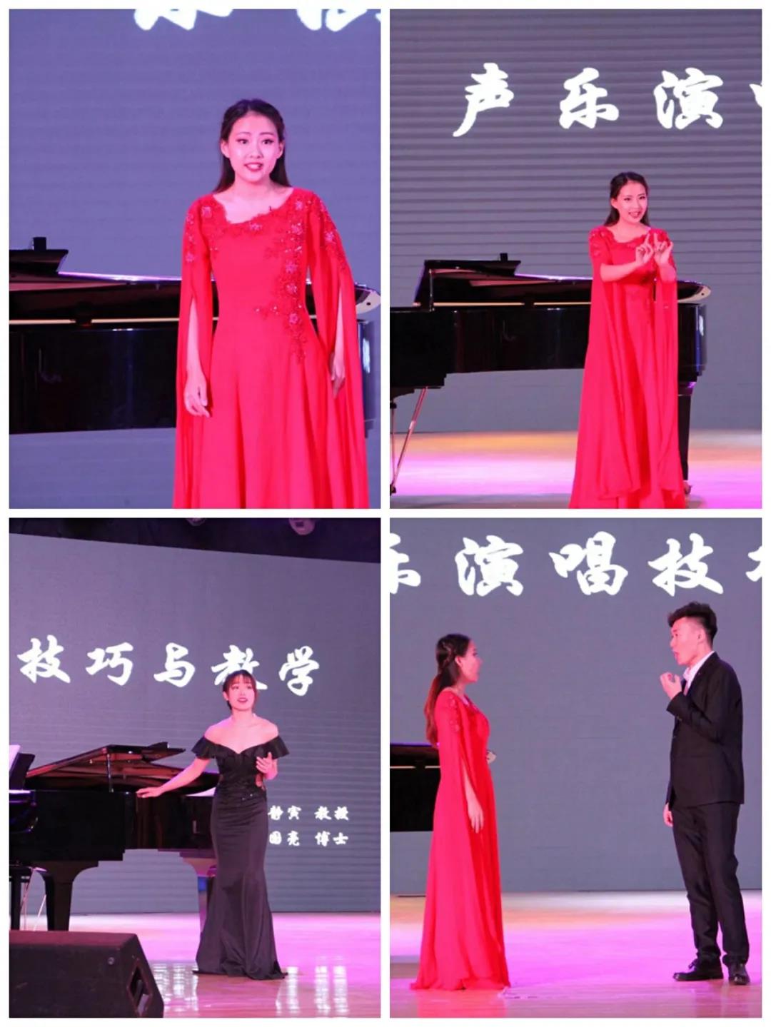 第三部分为学术交流与吴教授教学展示部分。吴教授带来四名员工与一位钢琴艺术指导老师,以讲解与演唱相结合的形式,进行了八首曲目的精彩演唱。有山西民歌《唱秧歌》;古诗词类艺术歌曲《长相思》;外国歌剧《卡门》选段《哈巴涅拉舞曲》;外国歌剧《偷撒一滴泪》咏叹调《爱的甘醇》;俄罗斯艺术歌曲《小路》和歌曲新唱《在水一方》。吴教授的员工以精湛的演唱技巧、细致的作品处理和完美的舞台表现,为我们带来了一场精彩的小型音乐会,博得台下老师与员工们的阵阵掌声。