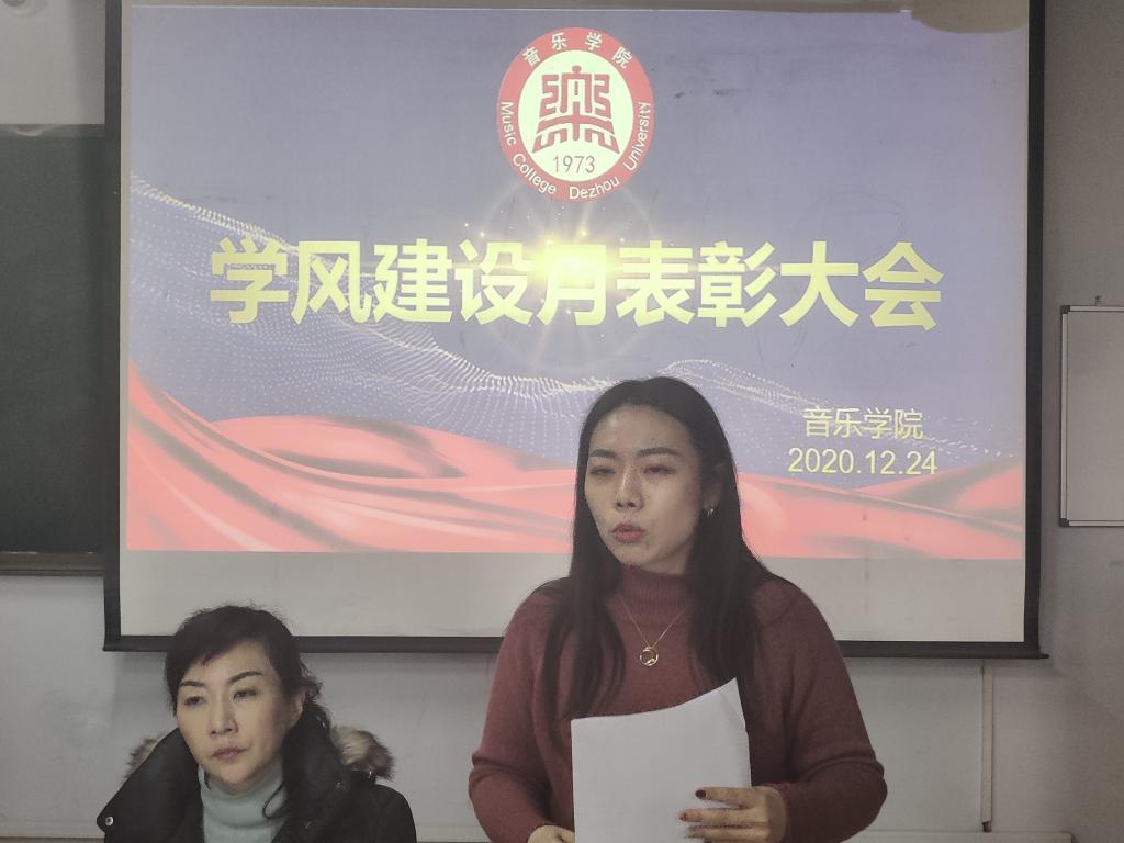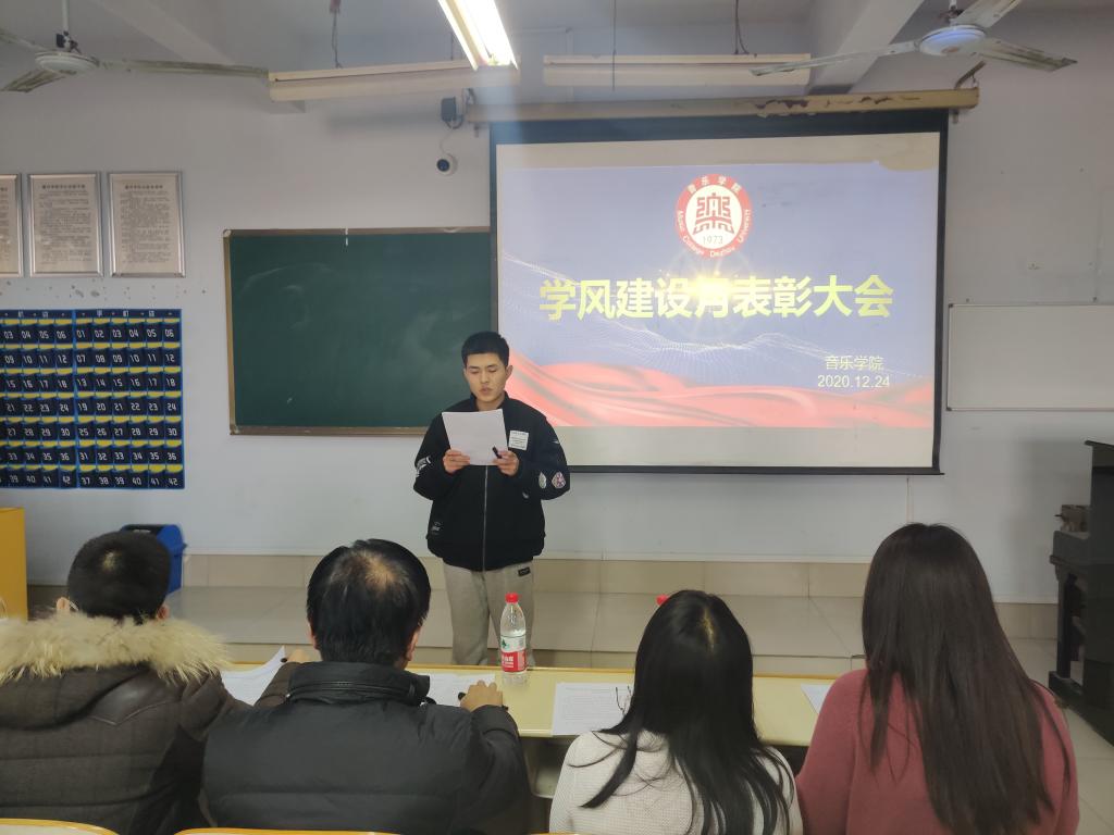 党总支副书记贺昱宣读了学风建设月表彰决定,获得表彰的集体及个人依次上台领奖。随后先进班集体代表、先进宿舍代表、优秀琴房长代表以及优秀个人代表分别上台发言,他们表达了积极向上、奋发有为的情怀和珍惜荣誉、努力争取更大成绩的决心。