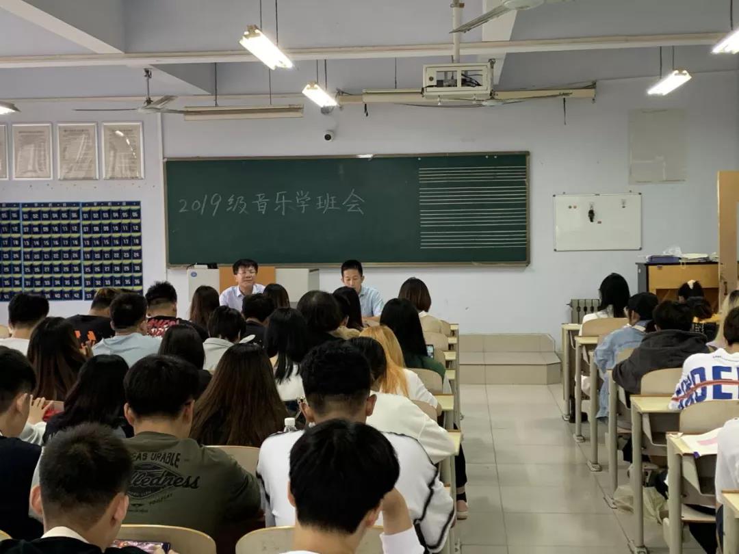 党委书记刘志华参加、指导了19级音乐学1、2班班会。在班会结束后,发表了热情洋溢的讲话,他主要从制定职业生涯规划,提早谋划未来2年的老员工活;树立专业意识,一心一意打好专业基础;关心国家、社会,树立远大理想,勇担时代责任等三个方面进行了阐释。