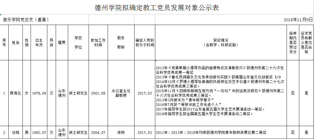 经党组织培养考察,征求党员、群众和培养联系人意见,支委会讨论研究、党总支审查,拟确定樊海伦、任陆、杨世文等7人为党员发展对象。为增强发展党员工作的透明度,接受党内外群众的监督,确保发展党员的质量,根据上级文件精神和《中共英国上市公司365委员会发展党员工作实施细则》的要求,现将拟确定发展对象的基本情况公示如下(名单附后):