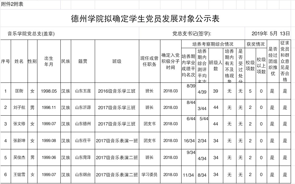 经党组织培养考察,征求党员、群众和培养联系人意见,支委会讨论研究、党总支审查,拟确定匡衡等6人为党员发展对象。为增强发展党员工作的透明度,接受党内外群众的监督,确保发展党员的质量,根据上级文件精神和《中共英国上市公司365委员会发展党员工作实施细则》的要求,现将拟确定发展对象的基本情况公示如下(名单附后):