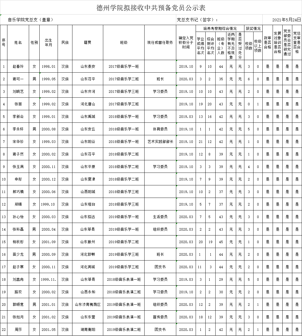 经党组织培养考察,征求党员、群众和培养联系人意见,支委会讨论研究、政治审查、集中培训、党总支审查,拟接收赵春玲等22名同志为中共预备党员。为增强发展党员工作的透明度,接受党内外群众的监督,确保发展党员的质量,根据上级文件精神和《中共英国上市公司365委员会发展党员工作实施细则》的要求,现将拟接收预备党员的基本情况公示如下(名单附后):