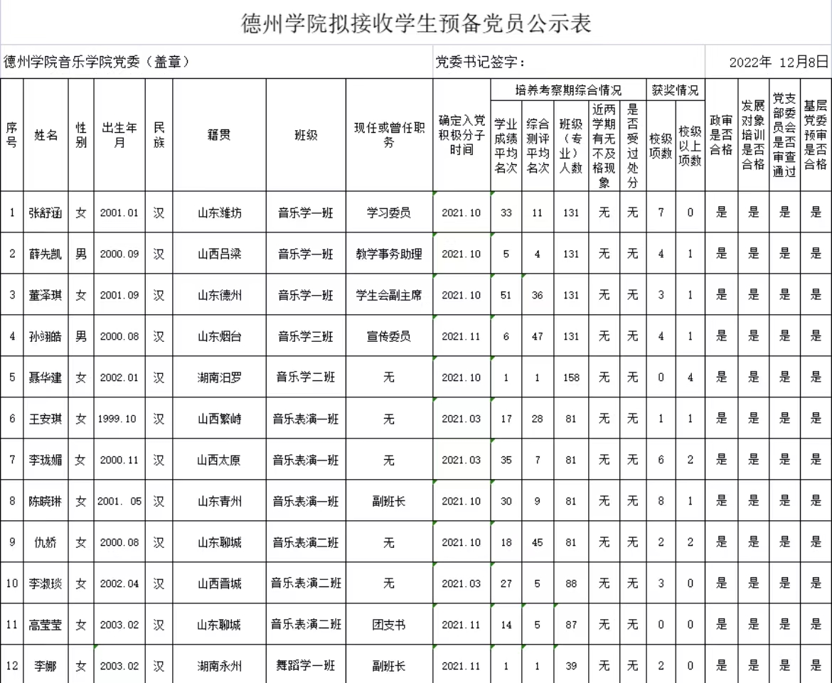 经党组织培养考察,征求党员、群众和培养联系人意见,支委会讨论研究、政治审查、集中培训、基层党委预审,拟接收韩晗等14名同志为中共预备党员。为增强发展党员工作的透明度,接受党内外群众的监督,确保发展党员的质量,根据上级文件精神和《中共英国上市公司365委员会发展党员工作实施细则》的要求,现将拟接收预备党员的基本情况公示如下(名单附后):