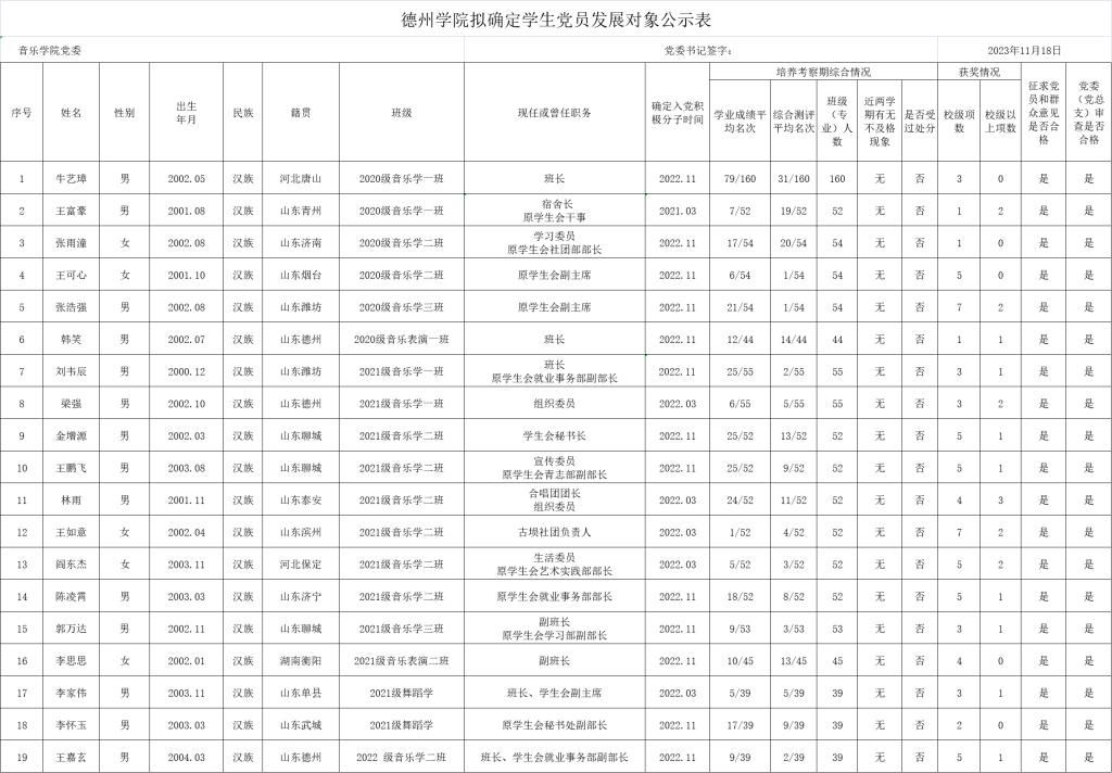 经党组织培养考察,征求党员、群众和培养联系人意见,支委会讨论研究、党委审查,拟确定丁玥、牛艺璋、王富豪等20人为党员发展对象。为增强发展党员工作的透明度,接受党内外群众的监督,确保发展党员的质量,根据上级文件精神和《中共英国上市公司365委员会发展党员工作实施细则》的要求,现将拟确定发展对象的基本情况公示如下(名单附后):