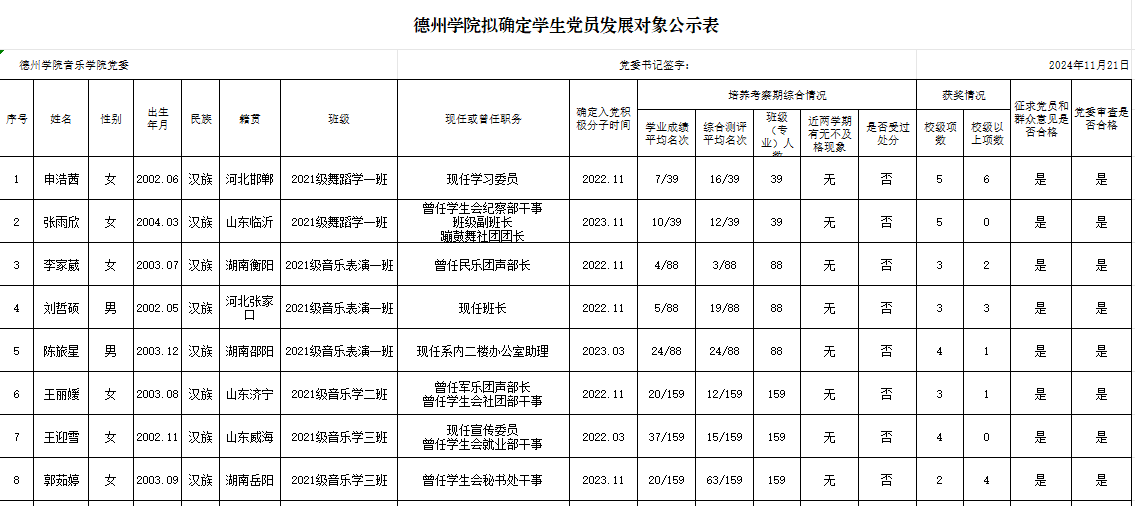 经党组织培养考察,征求党员、群众和培养联系人意见,支委会讨论研究、党委审查,拟确定申浩茜等19人为党员发展对象。为增强发展党员工作的透明度,接受党内外群众的监督,确保发展党员的质量,根据上级文件精神和《中共英国上市公司365委员会发展党员工作实施细则》的要求,现将拟确定发展对象的基本情况公示如下(名单附后):