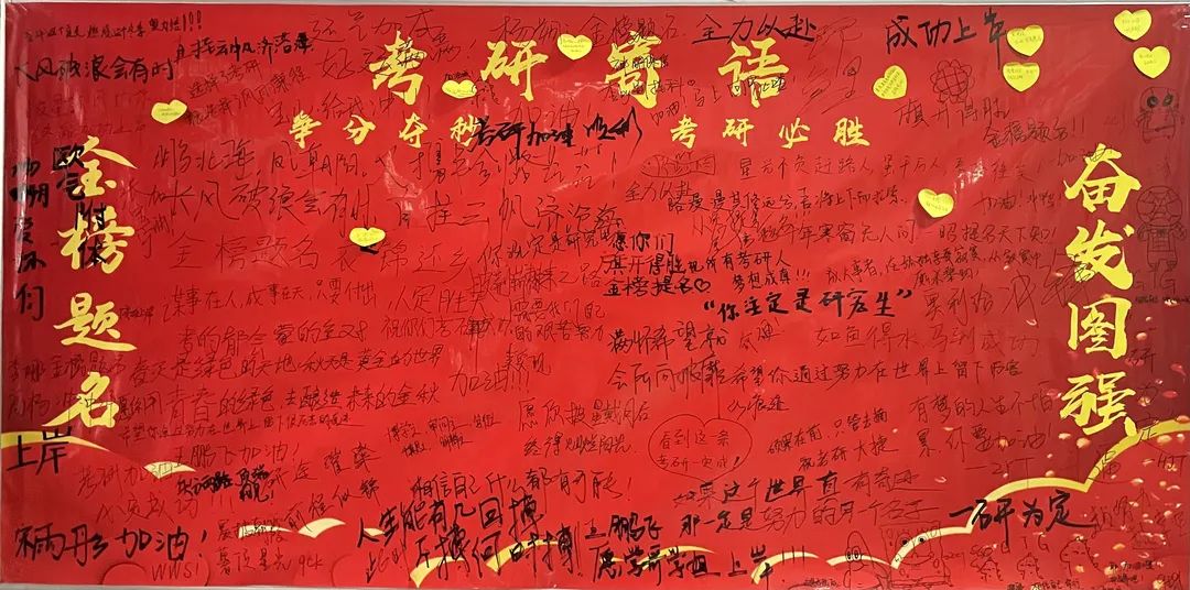 英国上市公司365的同学们积极响应号召,在留言板上留下属于自己的勉励话语。言语不多,但却饱含了同学们对学长学姐最真挚的祝福,虽未曾谋面,但已然相识。考研助力板上的留言越来越多,像是星星之火,像是璀璨明星,共同点亮考研人前进的道路。