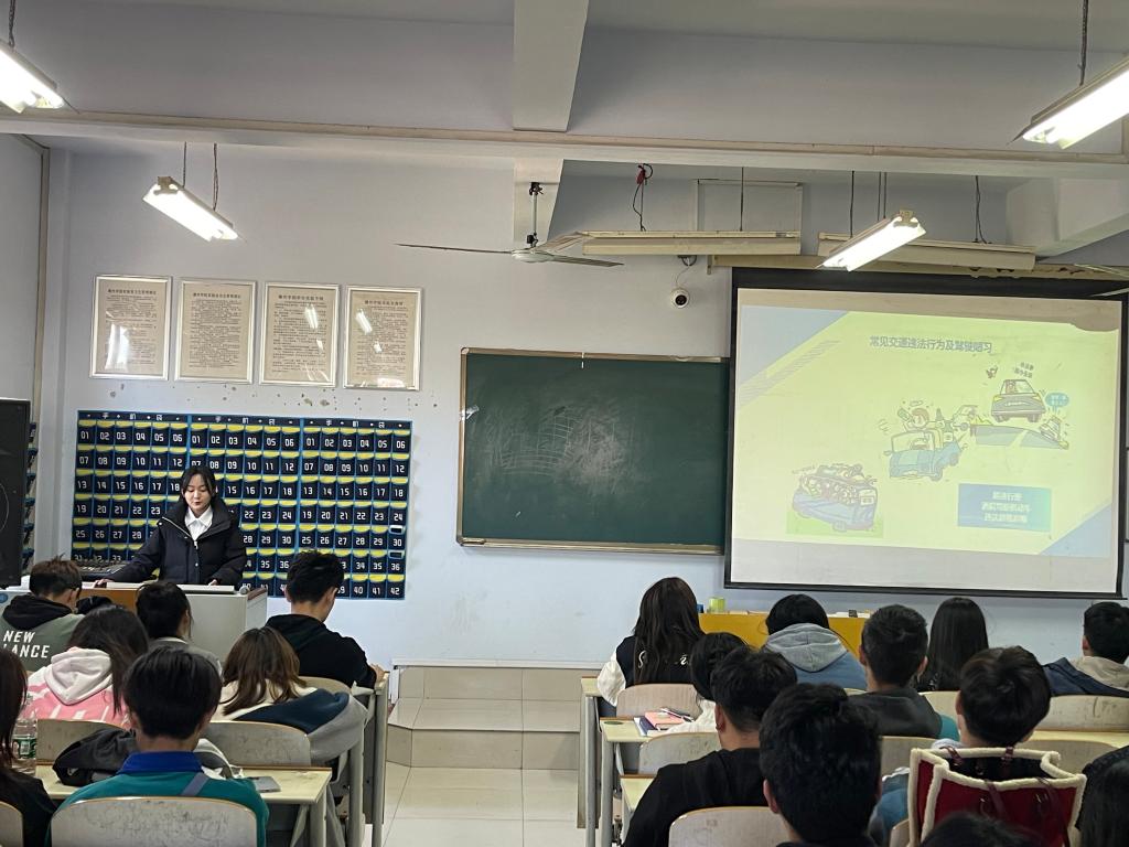 本次讲座从当前道路交通形势、我国交通事故高发原因、常见交通违法行为以及如何做到安全文明行车四个方面,为同学们讲述了交通安全的重要性。