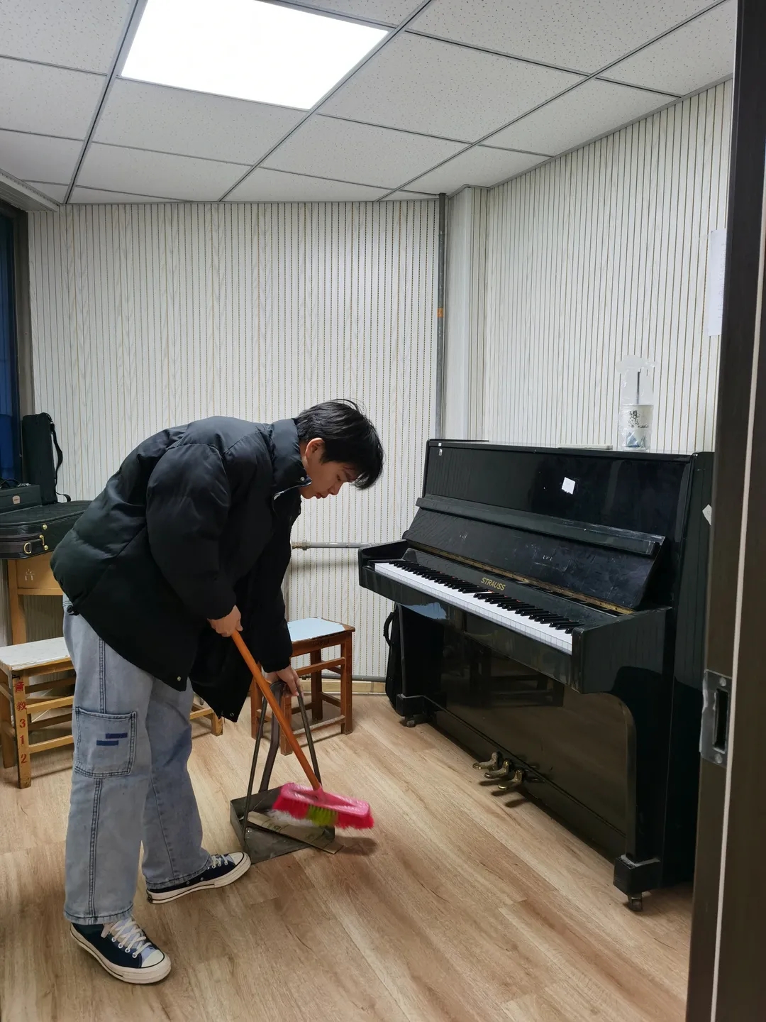 音院学子们对琴房卫生进行了清扫,员工们互相配合,利用手中的清洁工具,铲除积存垃圾,努力清除各卫生死角。同时,按照创城工作要求,切实担负起责任,积极引导同学们养成良好的卫生习惯,力求创城活动人人知晓、踊跃参与。