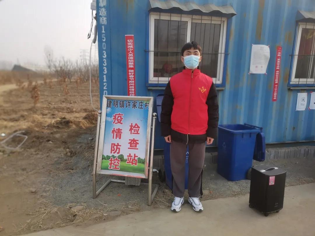 他在山东省聊城市茌平县贾寨镇后寨村村委会做着志愿者服务,在防疫志愿服务中他的工作是人员信息统计。