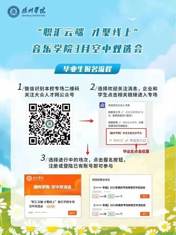 为深入贯彻落实党中央国务院关于高校毕业生就业工作的重要指示精神和“稳就业、保就业”决策部署,积极做好高校毕业生等重点群体就业工作,根据省人社厅和教育厅对高校毕业生就业工作的相关要求,同时为做好学校疫情防控常态化条件下毕业生就业工作,学院联合大众人才网就业平台举办持续性、常态化的空中双选会系列活动,为各企事业单位的招聘和学校应、往届毕业生稳定就业拓路护航,诚挚邀请您参会。