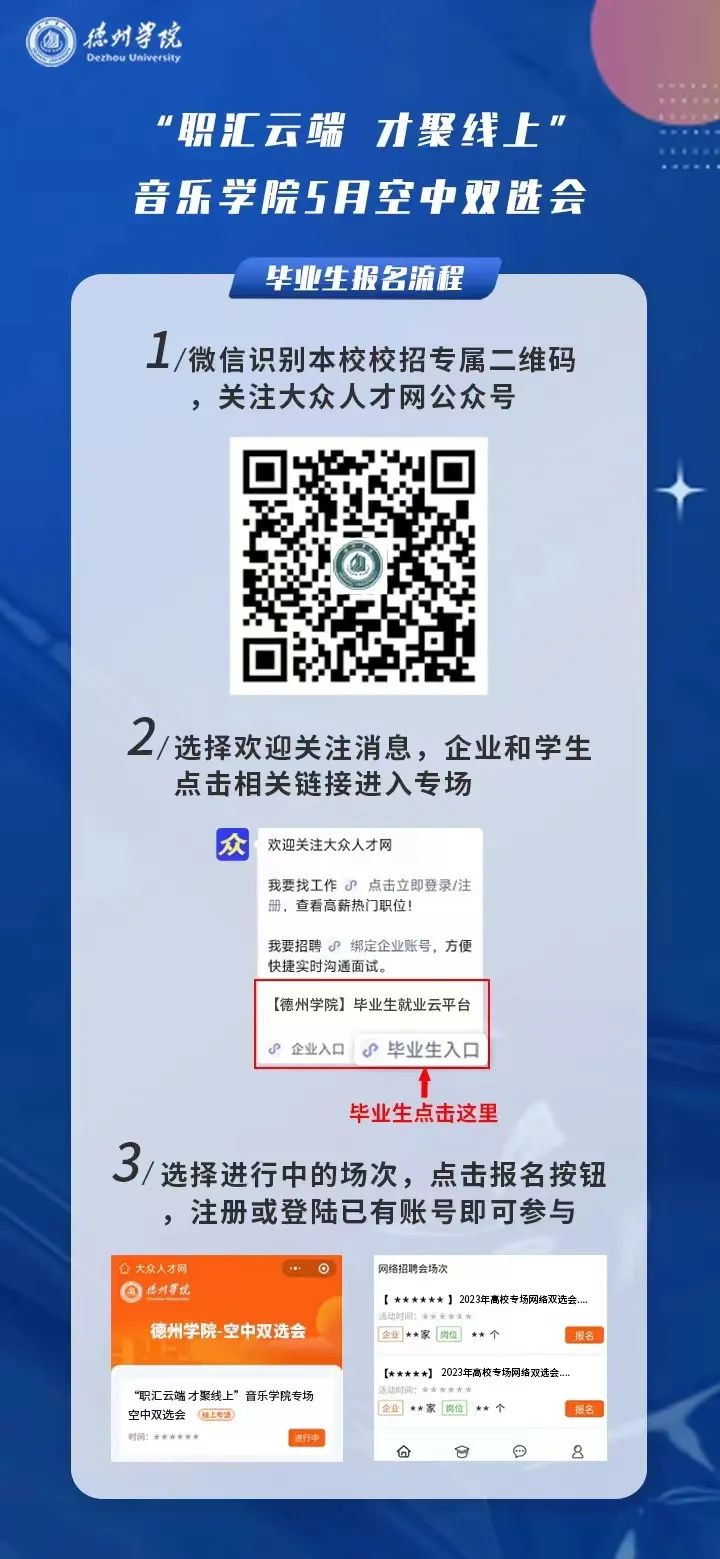 为深入贯彻落实党中央国务院关于高校毕业生就业工作的重要指示精神和“稳就业、保就业”决策部署,积极做好高校毕业生等重点群体就业工作,根据省人社厅和教育厅对高校毕业生就业工作的相关要求,学院联合大众人才网就业平台举办持续性、常态化的空中双选会系列活动,为各企事业单位的招聘和学校应、往届毕业生稳定就业拓路护航,诚挚邀请您参会。