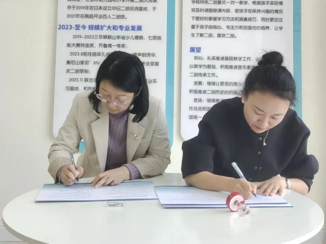 企业负责人李玥君对公司一行人员的到访表示热烈欢迎,双方围绕就业基地建设、传统乐器二胡人才的培养、民族文化的传承以及毕业生就业优选等方面进行座谈。随后,共同参观校区建设、聆听企业发展愿景,观看毕业生代表、双方教师代表、联合曲艺演奏等技能展示。一致表示,将以本次访企拓岗促就业专项行动为契机,加强专业领域多维联动,促进专业人才双向交流,为更多优秀毕业生搭建就业创业的高质量平台。最后,双方共同签订就业基地协议,并为就业基地挂牌。