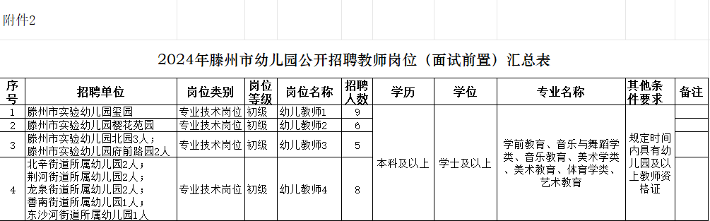 根据事业单位公开招聘有关规定,结合各学校幼儿园实际需要,经市委、市政府同意,2024年滕州市中小学幼儿园公开招聘中小学教师277名,幼儿园教师28名。现将有关事项公告如下: