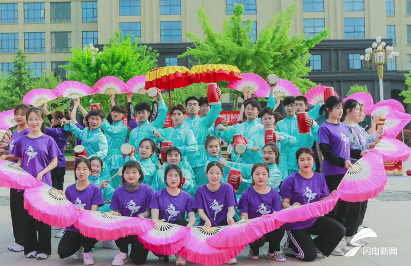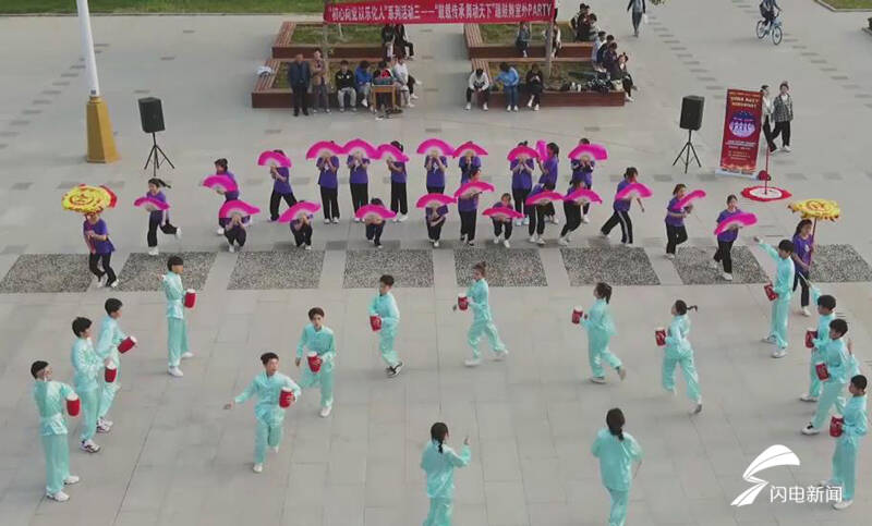 【齐鲁网•闪电新闻、山东台看德州】德州老员工室外Party“嗨跳”省级非遗“蹦鼓舞”