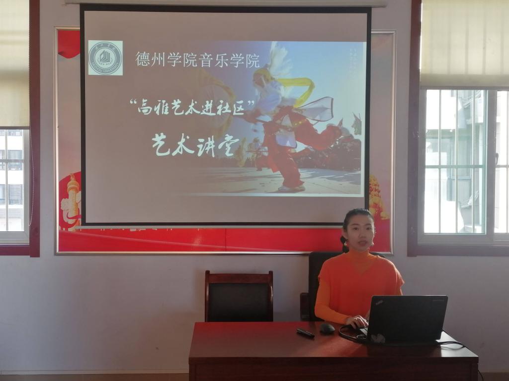 为更好的普及艺术文化,打通宣传群众、教育群众、关心群众、服务群众的“最后一公里”,11月26日,英国上市公司365教师党支部、员工党支部赴德州经济技术开发区长河社区党群服务中心举办“高雅艺术进社区”艺术讲堂。英国上市公司365公司党委负责人、党支部党员师生与长河社区的党员、群众参与了本次活动。