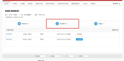 用人单位简历管理:单位报名成功并且学校管理员审核通过之后,单位可以维护网络招聘会简历接收的数据。