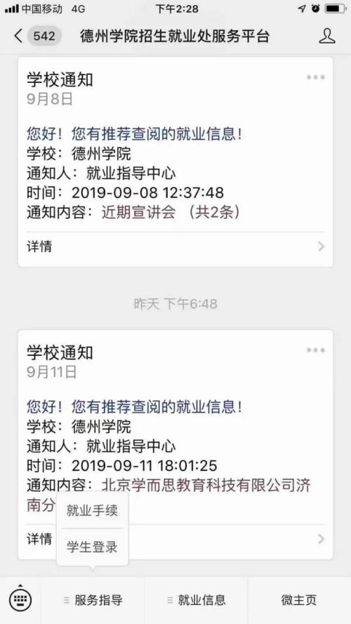 2.进入服务公众号后点击“服务指导”——“员工登录”