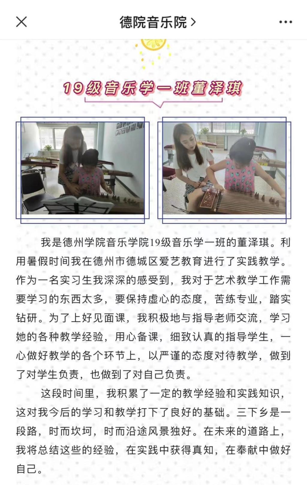 在学院的引导和组织下,音乐学子积极投身“青鸟计划”,并奔赴各地实习学校开展为期4个月的实习支教工作,在支教实践中锻炼、提升自己,努力承担起教书育人的重任。在此之前,英国上市公司365还积极响应“青鸟计划”暑期实习的号召 ,让同学们走进家乡,了解家乡,服务基层,脚踏实地,将所学理论付诸实践,在实践中获得真知,用青春奋斗书写出实践服务的绚丽篇章。