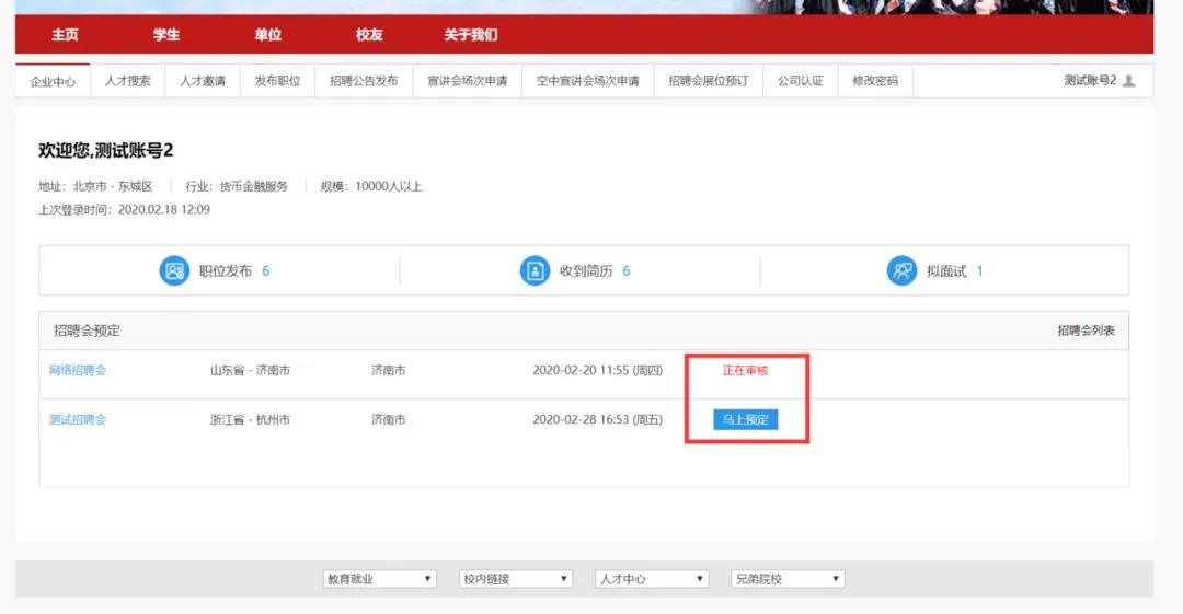 方法二:单位进入网络招聘会大厅点击单位报名参加即可