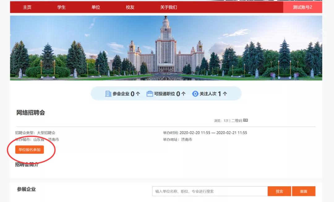 用人单位登录智慧就业系统或直接找到学校的网络招聘会点击单位报名参加即可。