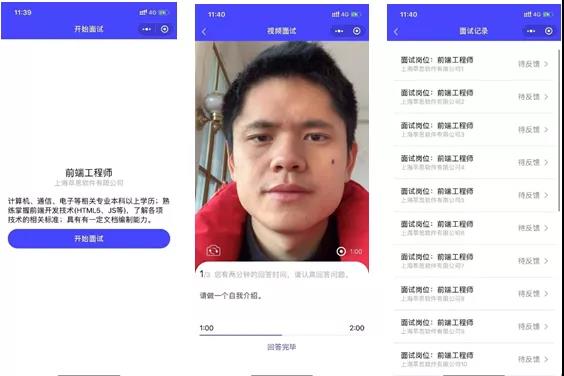 员工手机扫码登录视频小程序,按向导完成视频面试。