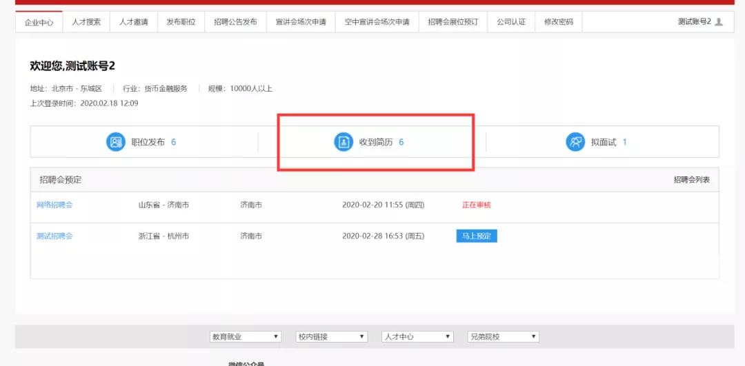 单位报名成功并且学校管理员审核通过之后,单位可以维护网络招聘会简历接收的数据。