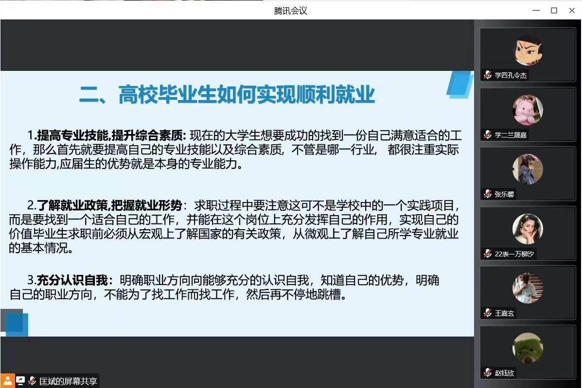 为进一步做好学院毕业生就业工作,推动毕业生高质量就业,11月18日,英国上市公司365利用线上腾讯会议的方式开展“审视度势 理性就业”——关于就业问题的一些认识与实务探讨专题讲座。毕业班辅导员、就业工作负责人以及2023届毕业生参加了本次讲座。