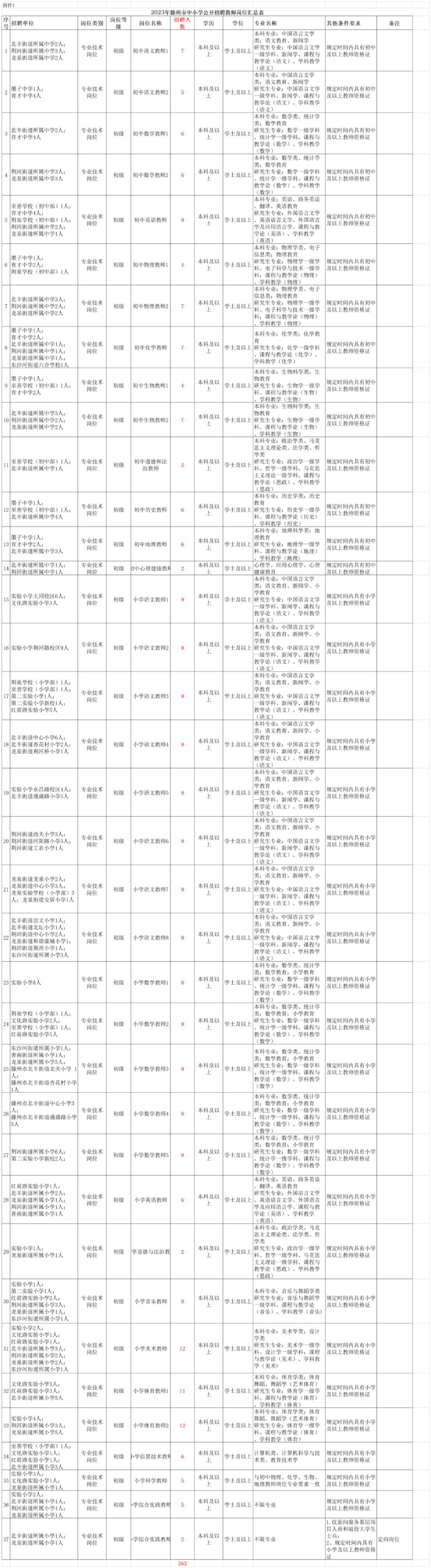 中小学公开招聘教师的岗位条件、招聘人数等具体要求见附件1,幼儿园公开招聘教师的岗位条件、招聘人数等具体要求见附件2。