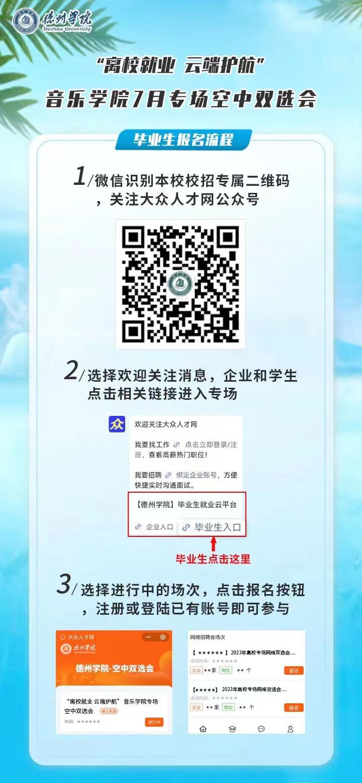 为深入贯彻落实党中央国务院关于高校毕业生就业工作的重要指示精神和“稳就业、保就业”决策部署,积极做好高校毕业生等重点群体就业工作,根据省人社厅和教育厅对高校毕业生就业工作的相关要求,学院联合大众人才网就业平台举办持续性、常态化的空中双选会系列活动,为各企事业单位的招聘和学校应、往届毕业生稳定就业拓路护航,诚挚邀请您参会。
